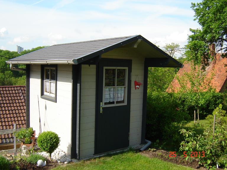 anbei Fotos von unserem Gartenhaus, welches im Mai 2012 in Leinfelden-Oberaichen von ihnen aufgestellt wurde. Wir sind mit dem Gartenhaus sehr zufrieden, haben aber auch nichts anderes erwartet. Wir haben vor über 20 Jahren schon mal ein Gartenhaus von ihnen gekauft, welches in der Gartenanlage im Fasanenhof steht, immer noch sehr gut erhalten ist und die jetzigen Besitzer auch sehr zufrieden damit sind.